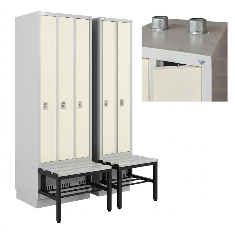 – Maße Umkleidebank 2-türig: 41 x 31,5 x 42,5 cm (BxTxH)